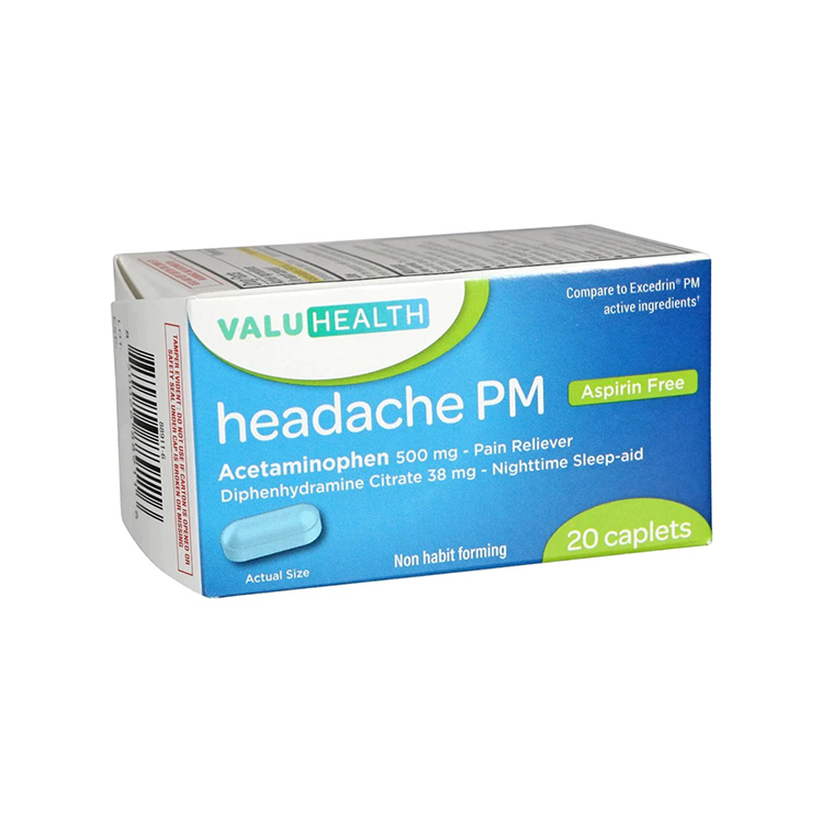 Alivia el dolor de cabeza, sin aspirina y difenhidramina (38mg) para brindar alivio nocturno.